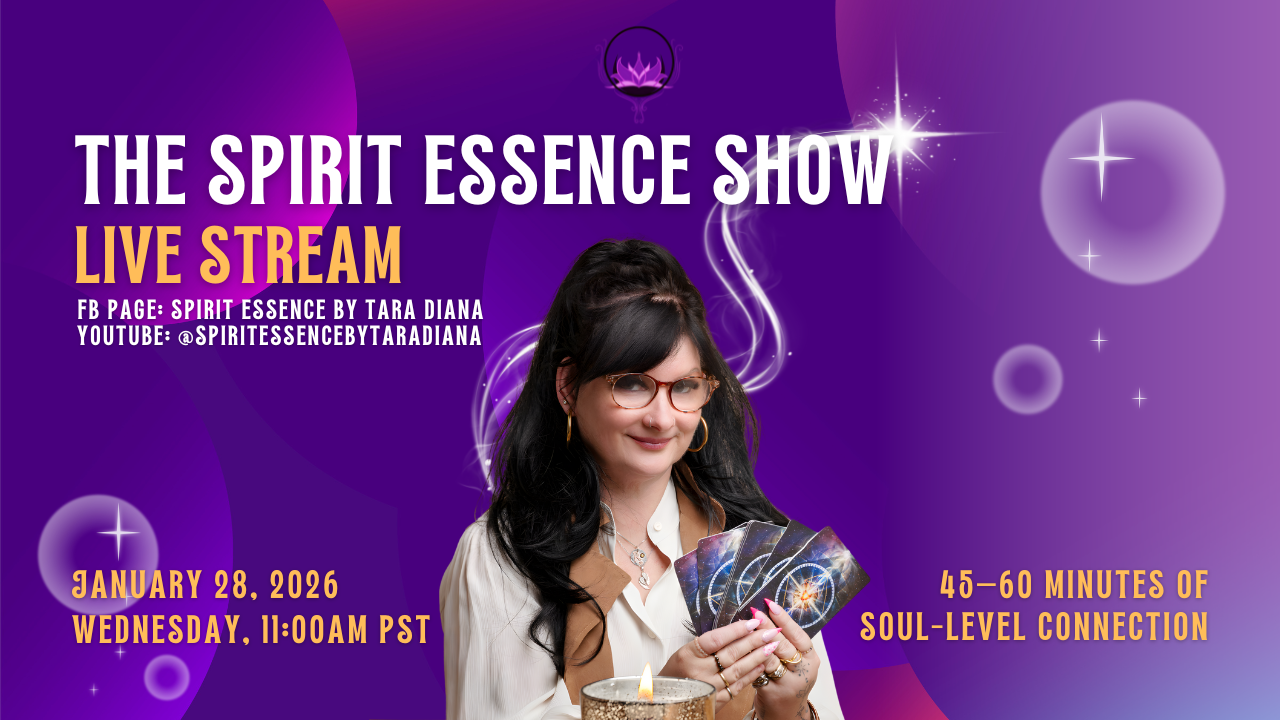 Welcome to The Spirit Essence Show, a monthly live experience dedicated to inspiration, healing, and heartfelt connection with Spirit. On select Wednesdays at 11 AM PST, join Medium Tara Diana for a powerful blend of intuitive teaching, guided meditation, healing prayer, and real-time Spirit Messages.